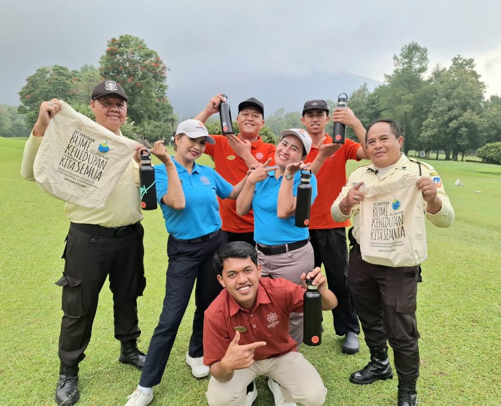 Employees of Handara Golf & Resort Bali demonstrate their commitment to sustainability by using eco-friendly water bottles and shopping bags.