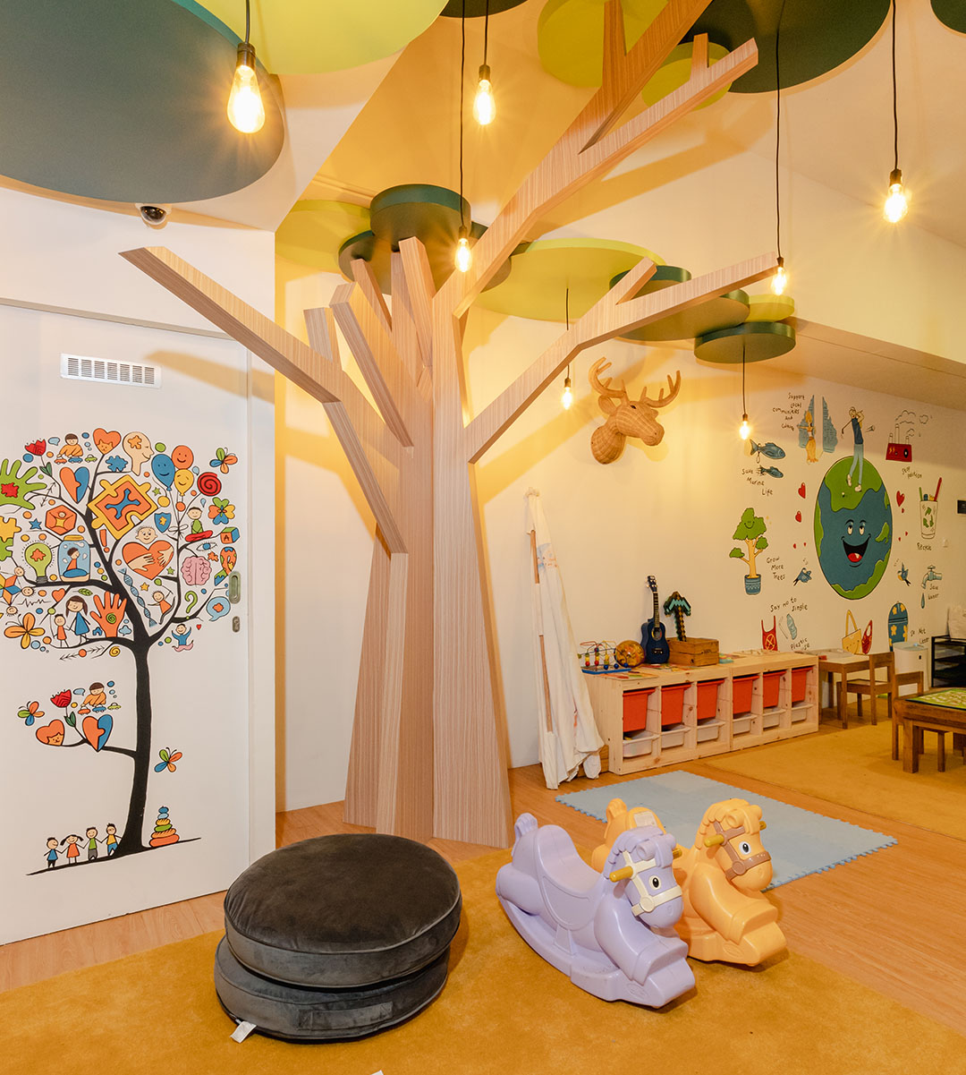 The room is thoughtfully decorated with bright, cheerful colors, creating an inviting, friendly atmosphere that stimulates curiosity and creativity. Every detail is designed to make kids feel comfortable and excited to explore.