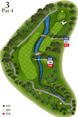 Pro’s Tip – longer hitters can take the option of going for the fairway to the right hand side of the creek. Such a line is riskier but will result in a much shorter approach. You may even drive the green.