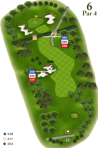 Pro’s Tip – like Hole 5, you must avoid having to putt downhill on this green at all costs. Plan your approach to finish below (a must) and left (preferred) of the Hole.