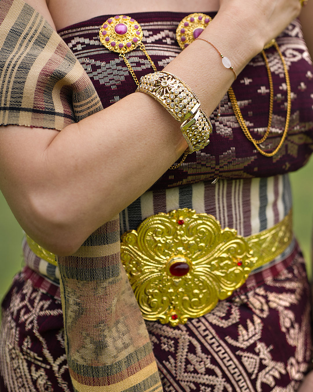 adorned in refined traditional attire —